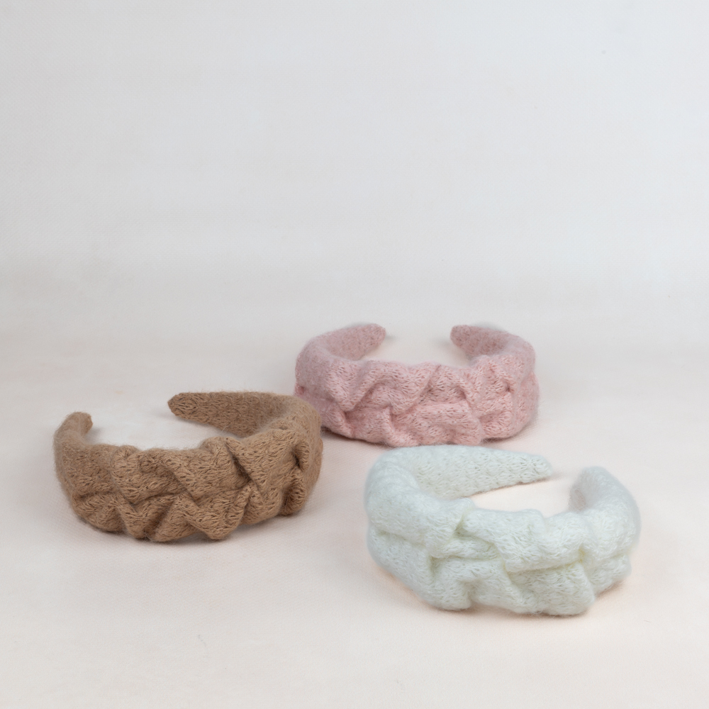 Tuo hiustyyliisi rentoa ryhtiä ja pehmeää tekstuuria tällä neulotulla laskospannalla. Kevyt neulos ja kauniit laskokset tekevät pannasta huolitellun näköisen asusteen.