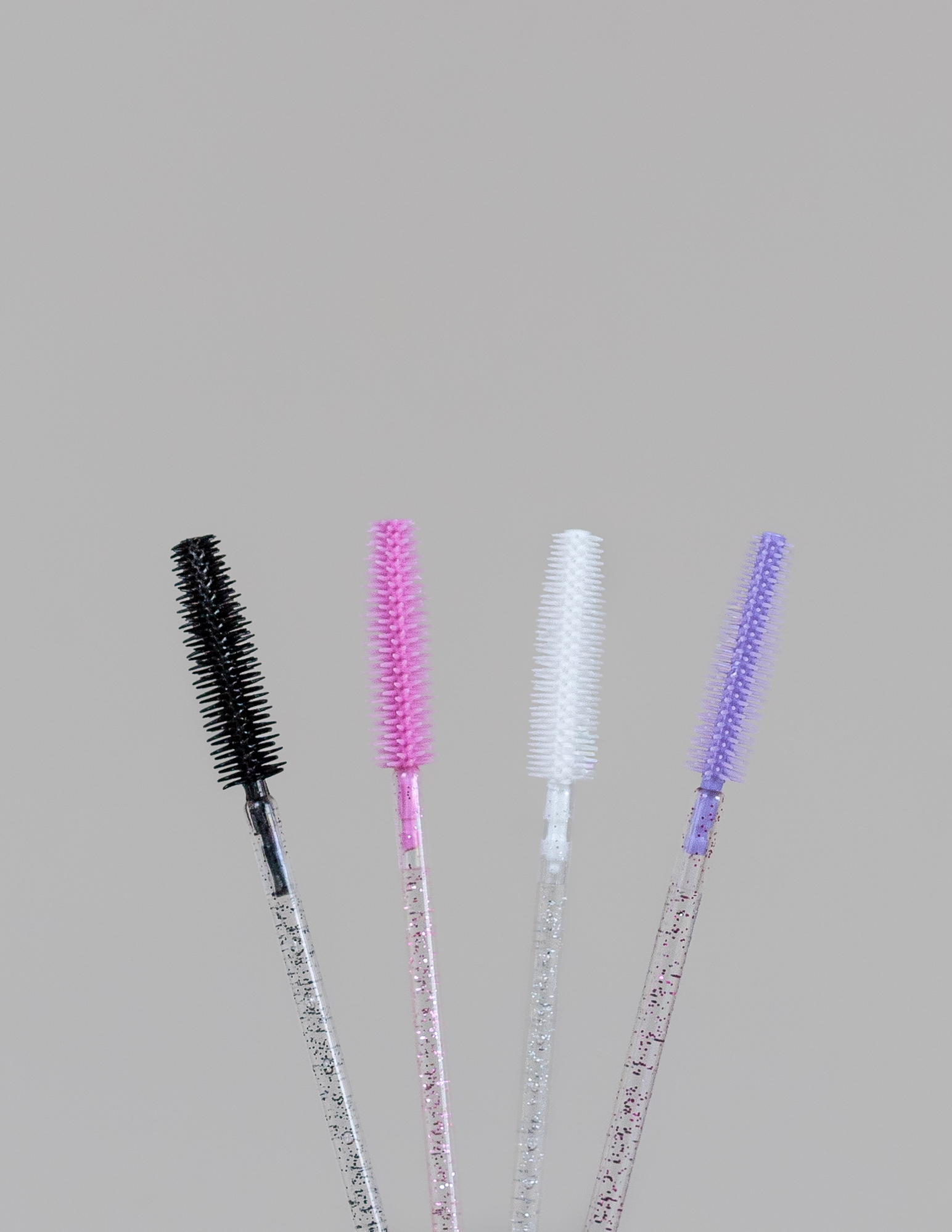 Yhdessä pakkauksessa on 100 kappaletta silikonisia ripsiharjoja. Saatavilla neljässä kauniin kimaltavassa sävyssä: musta, violetti, vaaleanpunainen sekä kirkas.