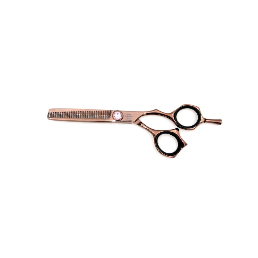 BP Professional Bronze -leikkaussaksissa on kristallinen sormikäyttöinen kiristysruuvi, jonka avulla voit säätää saksien kireyttä. Muotoilusaksista on saatavana 5,5″ pituus. Kaikissa malleissa on irroitettava sormituki.