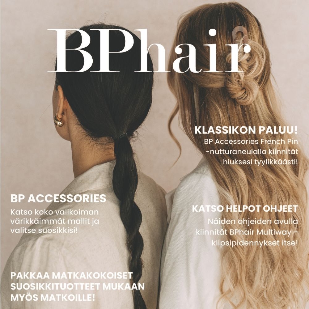 BPhair-kuvasto on suunniteltu ammattilaisille, jotka haluavat inspiroida asiakkaitaan ja samalla esitellä BPhairin-tuotevalikoimaa helposti ja tyylikkäästi. Kuvasto ei sisällä tuotteiden hintoja, vaan keskittyy valikoiman esittelyyn, ajankohtaisiin trendeihin ja käytännöllisiin vinkkeihin, joiden avulla sinä tai asiakkaasi voivat löytää uusia suosikkituotteita sekä ideoita hiusten- ja kauneudenhoitoon. Tässä kuvastossa on koostettuna vinkit mm. BPhair Multiway -klipsipidennysten sekä kauniisti kimaltavien hiustinselien kiinnittämiseen.